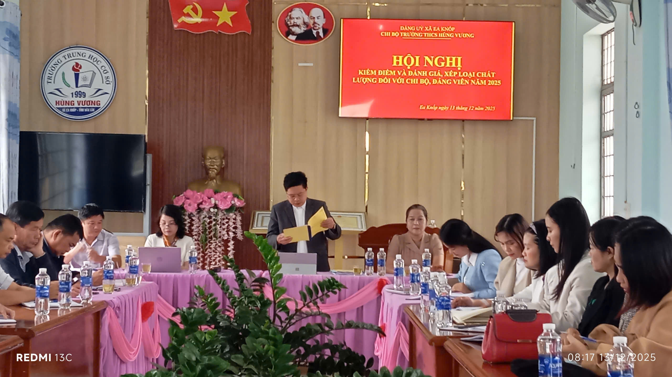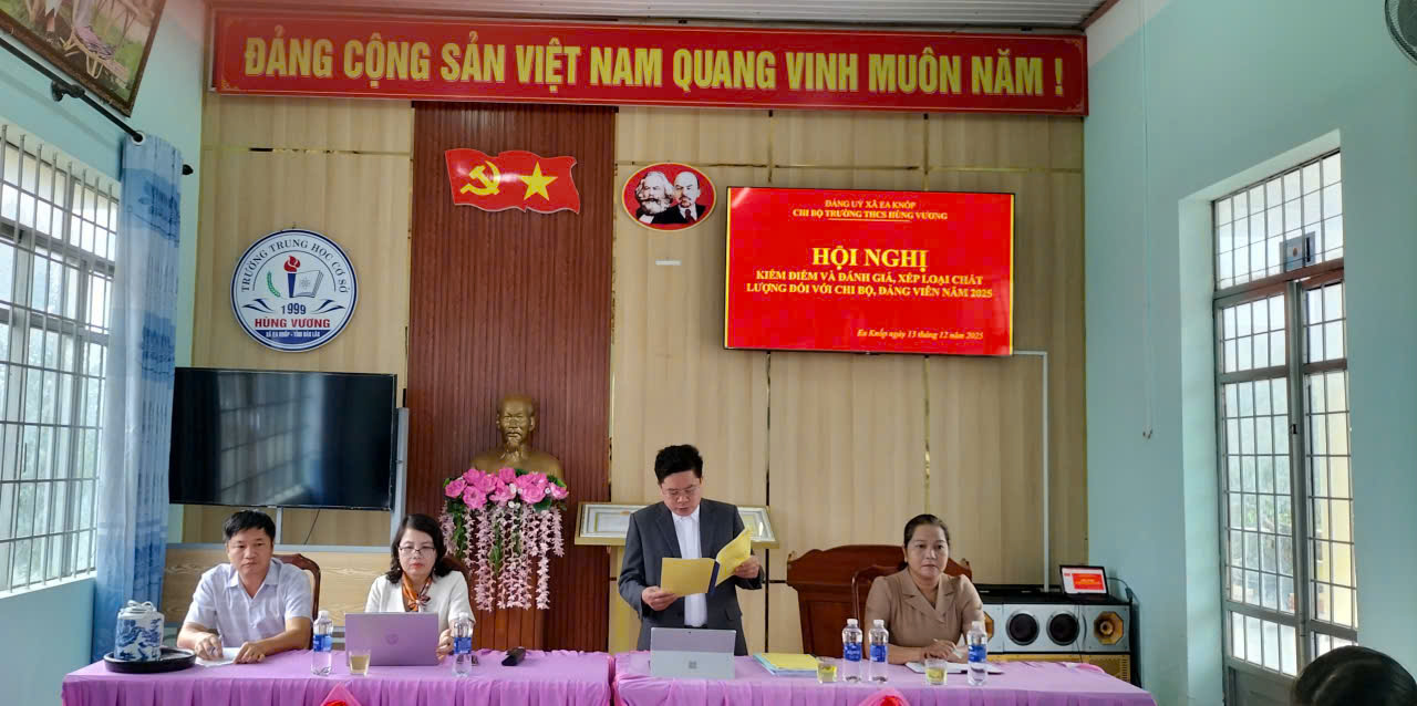 Sáng ngày 13/12/2025, tại phòng Hội đồng Trường THCS Hùng Vương, Chi bộ Trường THCS Hùng Vương đã tổ chức Hội nghị đánh giá chất tập thể Chi bộ và đảng viên cuối năm 2025 theo kế hoạch của Đảng ủy xã Ea Knốp.